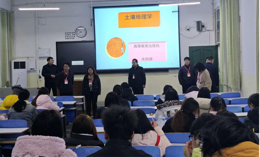 为全面掌握新学期教学运行状态,切实保障各项教育教学工作平稳有序开展,3月2日,地理科学学院党委书记宋力,副院长颜俊、闫军辉、潘晓芳,党委副书记韩勇,带领行政办公室、教学管理办公室、学生工作办公室相关人员,深入各教学课堂开展新学期教学专项检查。检查组重点围绕教师到岗履职、学生课堂出勤、教风学风建设、教学基础设施运行等情况进行细致查看,并特别关注了学院特色育人品牌——“地理故事会”青春微课堂活动开展情况。