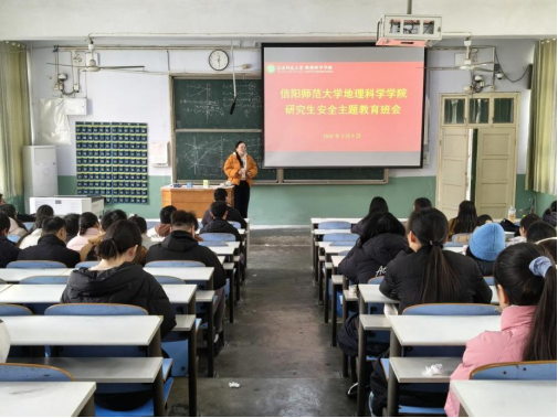 为切实筑牢研究生开学安全防线,强化安全防范意识,3月9日,地理科学学院组织召开了研究生开学安全主题教育班会。科研与研究生工作秘书崔向超、研究生班主任孙焕宇及全体硕士研究生共100余人参加此次会议,会议由孙焕宇主持。