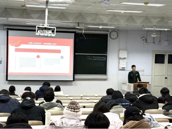 为激发学生参军报国热情,鼓励有志青年投身国防建设,12月25日,我院征兵宣讲会在教六101教室顺利举行。本次宣讲会由退伍返校学生何育航担任主讲人,我院老师张文皓主持。