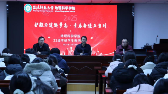 12月12日下午15时,为帮助考研学子舒缓备考压力、提振迎考信心,我院于理科楼南楼410举办2022级考研学子考前慰问活动。党委书记宋力、学院副院长颜俊、党委副书记韩勇、副院长闫军辉,辅导员代表与考研代表共同参与。